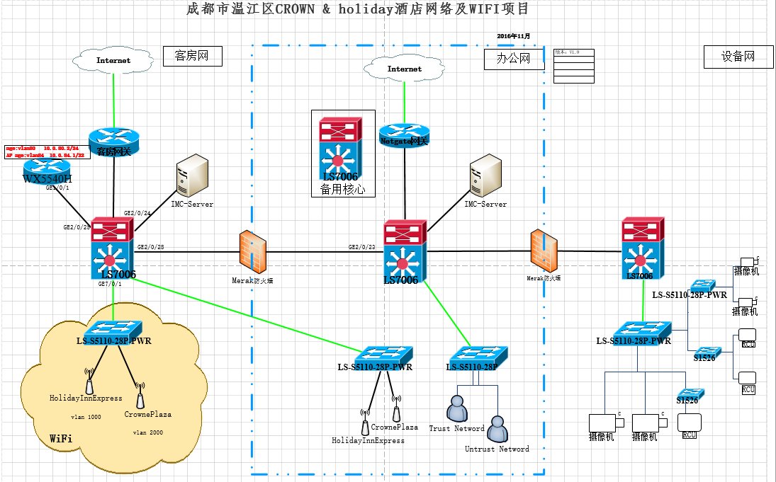 隨著中國旅游業(yè)的發(fā)展,中國酒店產(chǎn)業(yè)逐年擴(kuò)大、競爭加劇,競爭熱點(diǎn)也逐漸轉(zhuǎn)移到國際化、智能化方面。成都溫江皇冠假日酒店,位于四川省成都市溫江區(qū)鳳凰北大街619號,在此網(wǎng)絡(luò)項(xiàng)目中,我司承建了客房網(wǎng)、辦公網(wǎng)、監(jiān)控網(wǎng)三套網(wǎng)絡(luò)平臺建設(shè)。